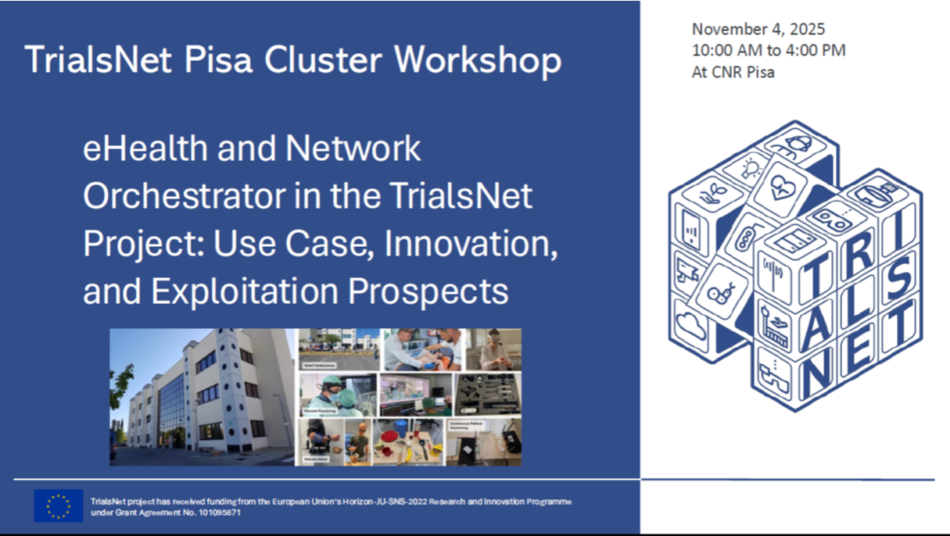 TrialsNet Pisa Cluster Workshop: eHealth and Network Orchestrator Details Date & time: November 4th, 2025 – from 10:00 AM to 4:00 PM CEST Place: CNR – Pisa, Italy The workshop...